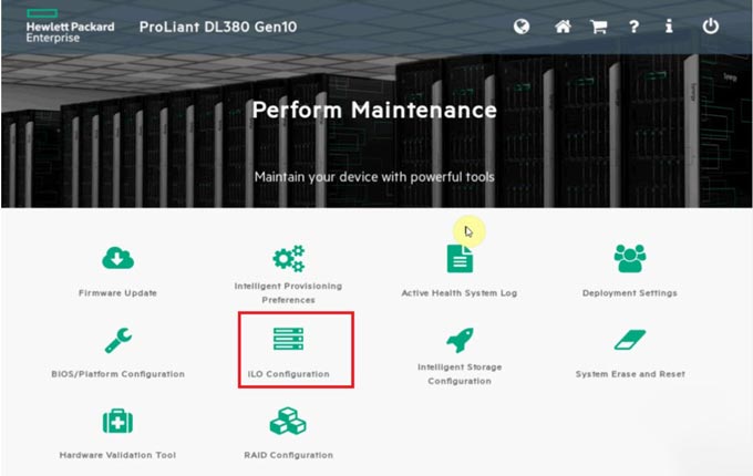 Chọn ILO Configuration để vào cấu hình ILO.