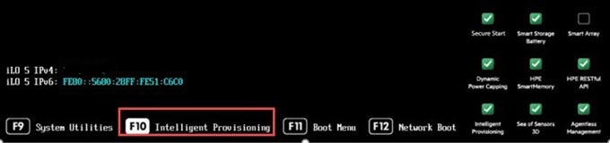 Bước 1: Sau khi boot lên server, ở màn hình POST nhấn F10 để vào giao diện Intelligent Provisioning.