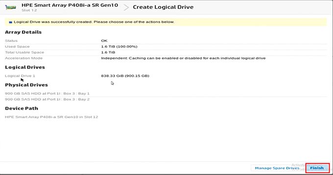 Bước 7: Sau đó xác nhận các thay đổi. Nhấp vào Finish và thực hiện Reset máy. Kết thúc cấu hình Raid cho server HPE