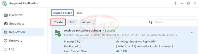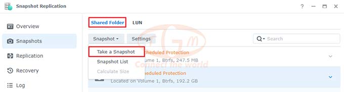 Truy cập Snapshot Replication: Vào mục Snapshots → Shared Folder.