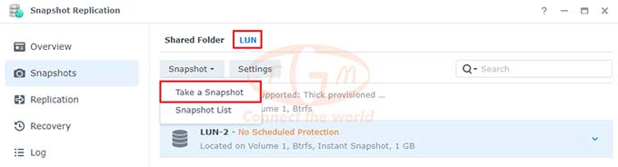 Truy cập Snapshot Replication: Vào Snapshots → LUN.