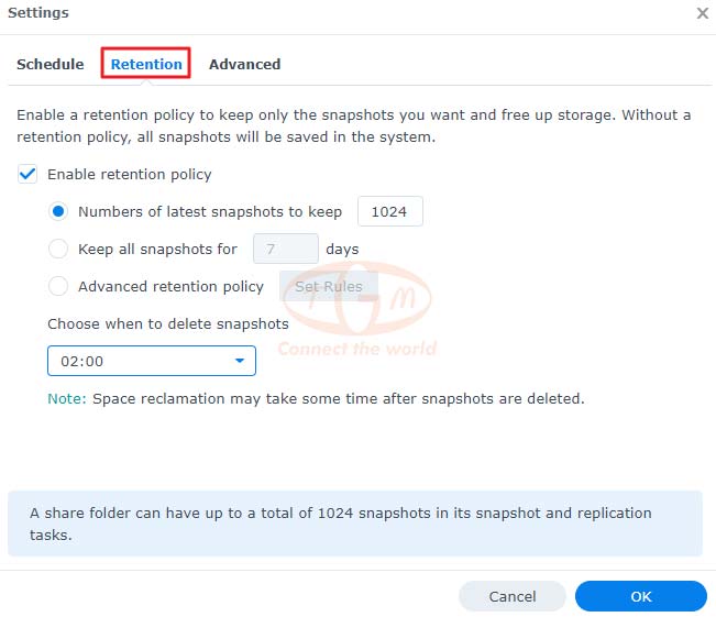 1.4 Cấu hình chính sách lưu giữ cho snapshot theo lịch trình