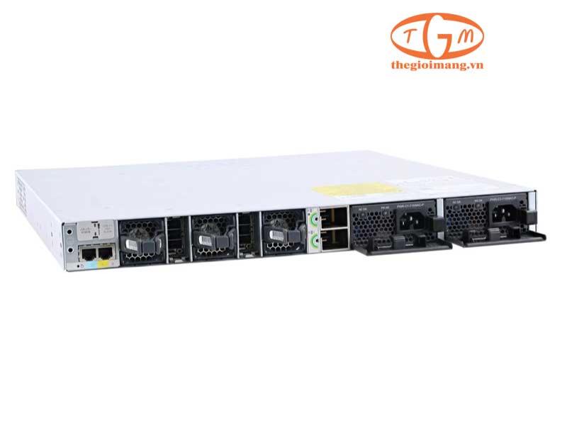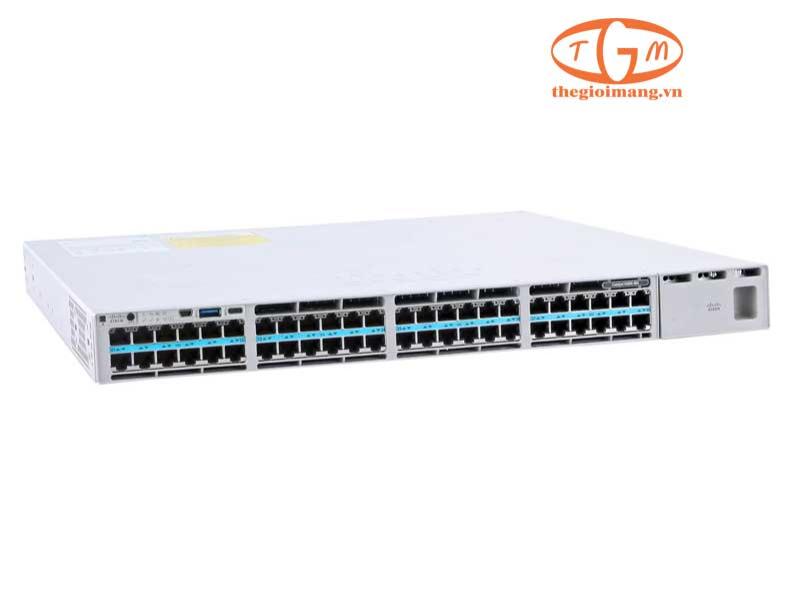 Switch C9300X-48TX-M này có 48 cổng RJ45 Multi-Gigabit Ethernet (mGig), hỗ trợ tốc độ 1G/2.5G/5G/10G, lý tưởng cho các thiết bị cần băng thông cao như Wi-Fi 6/6E, camera IP, máy chủ truy cập.